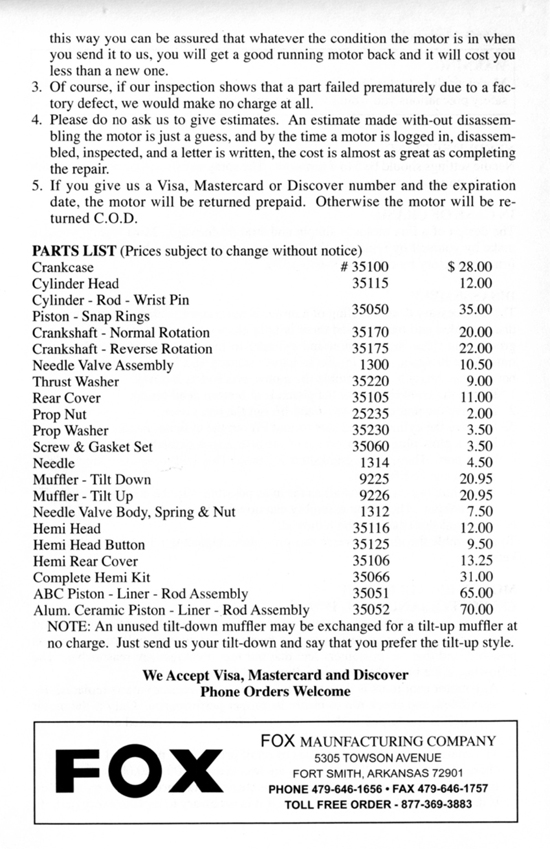 | FOX Mfg is a brand owned by MECOA Model Engine Corporation Of America 16015 Adelante St., Irwindale, CA 91702 www.mecoa.com |