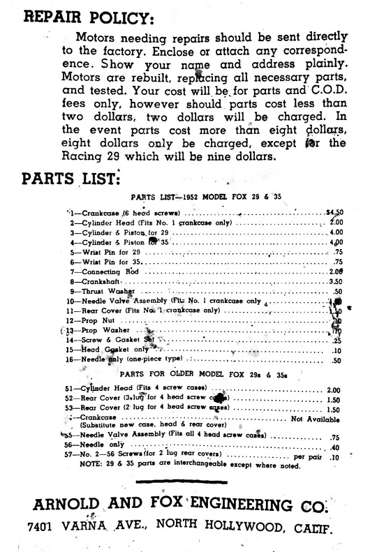 | FOX Mfg is a brand owned by MECOA Model Engine Corporation Of America 16015 Adelante St., Irwindale, CA 91702 www.mecoa.com |