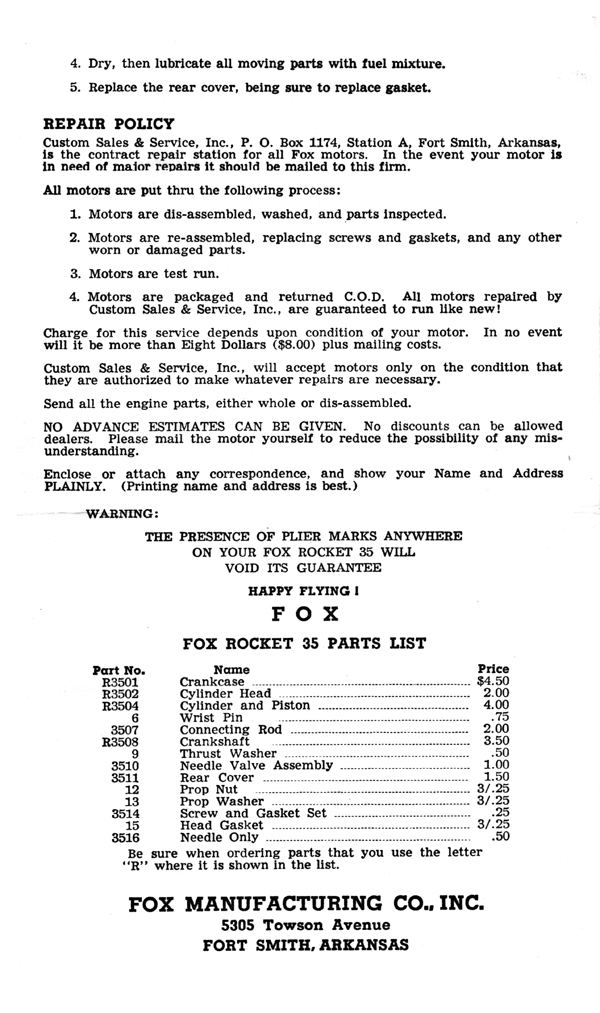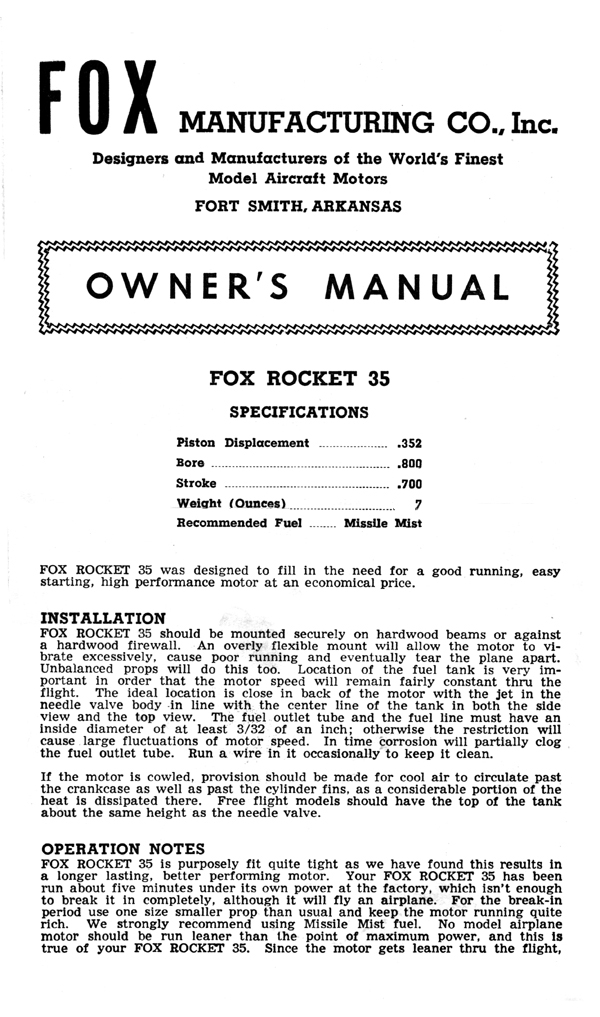 | FOX Mfg is a brand owned by MECOA Model Engine Corporation Of America 16015 Adelante St., Irwindale, CA 91702 www.mecoa.com |