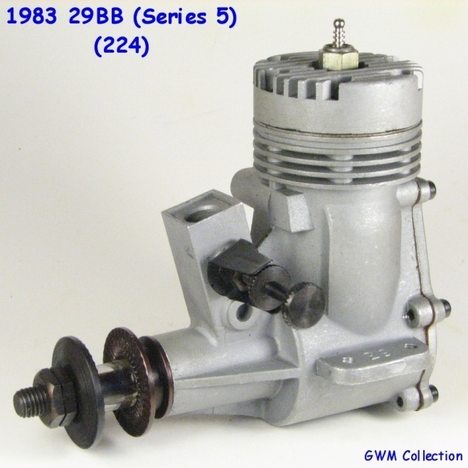 | This case was modified with a wider exhaust stack for muffler mounting, a single rear BB with the crankshaft running in case material in the front, and was sold as a 29, 36, and 40 known as the Series 5. 29 or 40 was stamped on top of the left mount; no marking indicated a 36. The 29 BB CL Series 5 (224), also sold as an RC version, was the last 29 Fox produced. | ![]() |