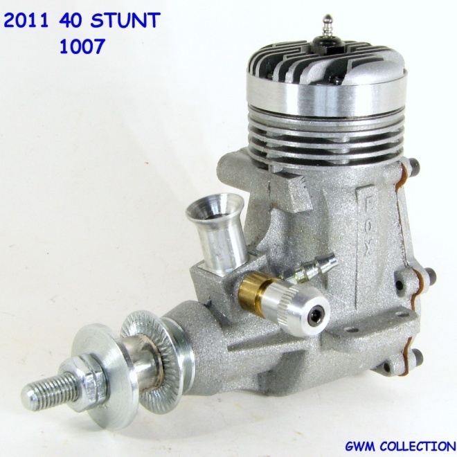 | In 2011, the last production versions of the 40 (310) used Foxs latest NVA. The actual last engine was a 2011 40 Stunt (1007) made in limited quantities with a bushed crank, iron/steel piston/cylinder, and Lew Woolards timing and combustion chamber designs. | ![]() |