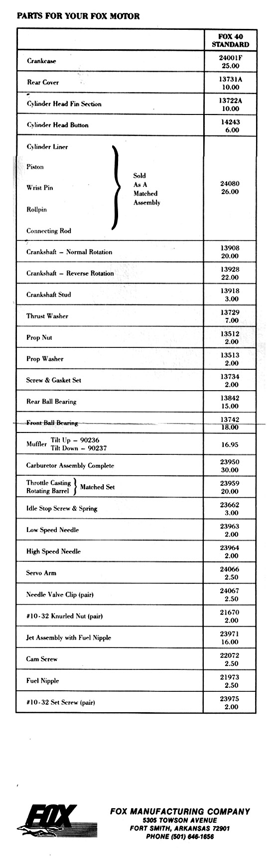 | FOX Mfg is a brand owned by MECOA Model Engine Corporation Of America 16015 Adelante St., Irwindale, CA 91702 www.mecoa.com |