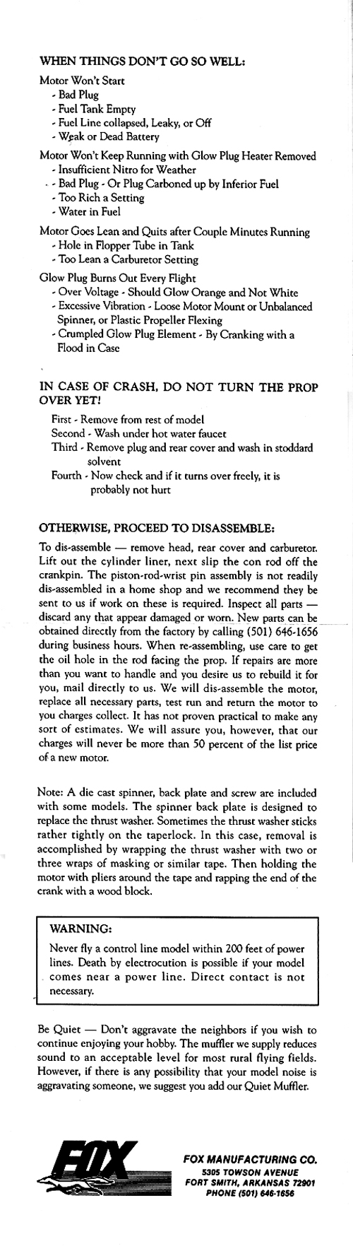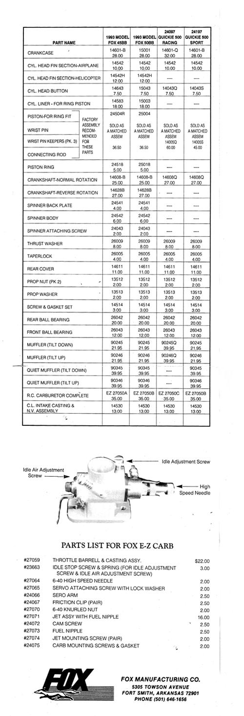 | FOX Mfg is a brand owned by MECOA Model Engine Corporation Of America 16015 Adelante St., Irwindale, CA 91702 www.mecoa.com |