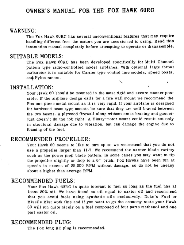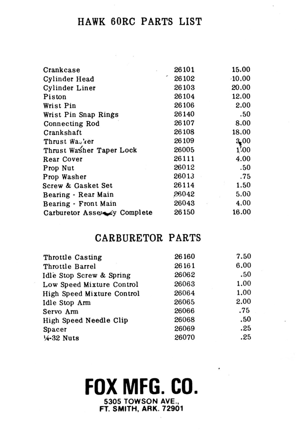 | FOX Mfg is a brand owned by MECOA Model Engine Corporation Of America 16015 Adelante St., Irwindale, CA 91702 www.mecoa.com |